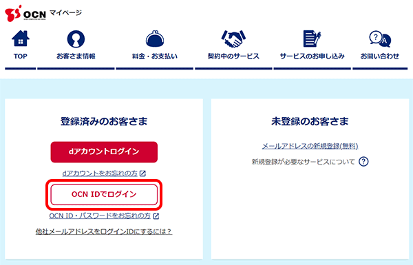 「dアカウント」とOCNを連携させている場合、「dアカウント」でOCNへのログインが可能です。「dアカウント」やパスワードがわからない場合は、こちらをご確認ください。
