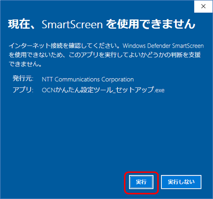 アプリの発行元が「NTT Comunications」になっていることを確認して「実行」を選択してください