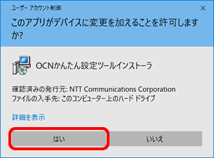 アプリの発行元が「NTT Communications」になっていることを確認して「実行」を選択してください